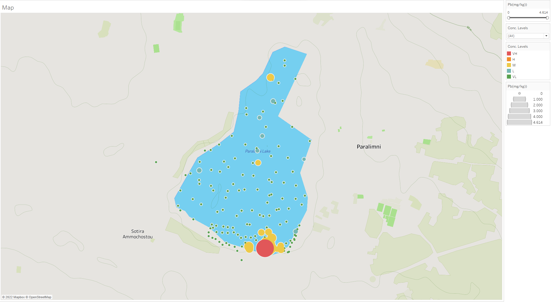 Τα αποτελέσματα δείχνουν ότι οι υψηλές συγκεντρώσεις μολύβδου στα ιζήματα της Αλυκής συνδέονται με την παρουσία του παλαιού σκοπευτηρίου στην περιοχή. Οι μεγαλύτερες συγκεντρώσεις εντοπίζονται δίπλα στον χώρο του πρώην σκοπευτηρίου και μειώνονται όσο αυξάνεται η απόσταση από αυτό, γεγονός που υποδεικνύει ότι αποτελεί την κύρια πηγή ρύπανσης. Στο σύμπλεγμα των Αλυκών βρίσκεται επίσης η λίμνη Λατσί στο Μενεού (γνωστή και ως λίμνη Σορός) όπου επιτρέπεται το κυνήγι. Ξεχωριστή μελέτη ιζημάτων στη συγκεκριμένη λίμνη επιβεβαίωσε επίσης την παρουσία μολύβδου, ο οποίος συνδέεται με μολύβδινα σφαιρίδια από κυνηγετικά φυσίγγια.